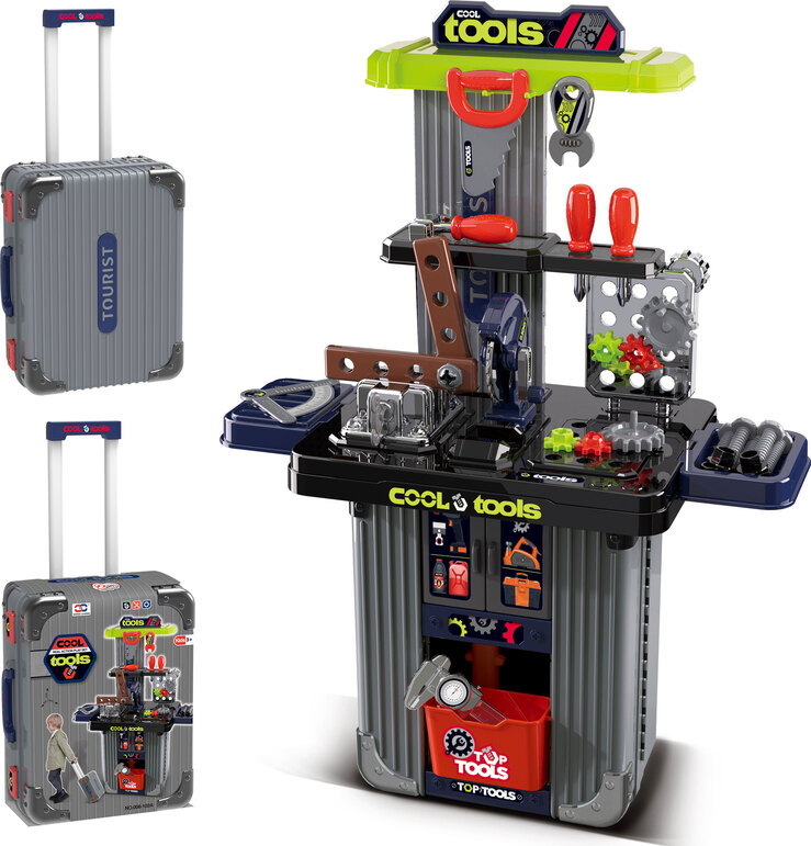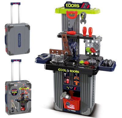 Cet atelier portable 2 en 1 dans une valise est le choix parfait pour tous les petits bricoleurs ! Une fois fermé, l'atelier se transforme en une valise à roulettes élégante que les enfants peuvent facilement emporter avec eux. Une fois ouvert, il se transforme en une surface de travail complète remplie de divers outils et accessoires qui permettront aux enfants de réparer, construire et explorer le monde du bricolage.