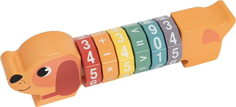 Avec ce joli chien en bois qui cache une astucieuse calculatrice motorisée, les enfants découvrent le monde des chiffres de manière ludique dès leur plus jeune âge.