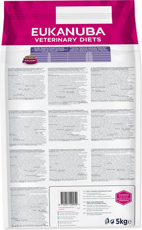 Aide significative dans la résolution des maladies gastro-intestinales. Indications : diarrhées non spécifiques, gastro-entérites aiguës / chroniques, inflammation de l'intestin, colite, insuffisance exocrine, syndrome de prolifération bactérienne dans l'intestin grêle, malabsorption / maldigestion, erreurs diététiques, constipation, pancréatite, parasitoses, hyperlipidémie, entéropathies avec perte de protéines, lymphangiectasies. Spécificités du régime : les fructooligosaccharides (FOS) sont une nouvelle source de fibres qui aident à maintenir la flore intestinale naturelle et empêchent ainsi la prolifération des pathogènes la faible teneur en matières grasses empêche la stimulation du pancréas, une source de graisses hautement digestibles contenue en faible concentration aide à réduire la pression osmotique dans la lumière intestinale et empêche l'apparition de stéatorrhée, qui aggrave l'évolution de la maladie les acides gras oméga-6 et oméga-3 présents dans un rapport de 5:1 à 10:1 aident à accélérer les processus au niveau de la muqueuse du tractus digestif Posologie : voir le tableau sur l'emballage. Durée recommandée de l'administration : 3-12 semaines, à long terme dans les cas d'insuffisance pancréatique chronique, chez les patients présentant des manifestations aiguës de troubles de l'absorption des nutriments 1-2 semaines. Dans les cas de troubles de la régulation du métabolisme lipidique, la durée de la diétothérapie peut aller jusqu'à 2 mois. Le patient doit avoir un accès libre à l'eau. Composition : viande de poulet, poulet, viande de poisson, betterave séchée, abats de poulet, œufs séchés, graisse de poulet, amidon de maïs, farine de riz, levures séchées, fructooligosaccharides, huile de poisson, graines de lin, DL-méthionine. Caractéristiques qualitatives : protéines brutes 23%, humidité 8%, huiles et graisses 10%, cendres brutes 6%, fibres 1,9%, acides gras oméga-6 17,5 g / kg, acides gras oméga-3 3,5 g / kg, calcium 1%, phosphore 0,8%, potassium 0,82%, vitamine A 12500 mj / kg, vitamine D3 900 mj / kg, vitamine E (alpha-tocophérol) 100 mg / kg, cuivre sous forme de sulfate de cuivre 16 mg / kg. Énergie métabolisable : In vivo : 3978 KCA l / kg (16,7 MJ / kg) In vitro : 3440 kcal / kg (14,4 MJ / kg) Alimentez votre chien avec un régime vétérinaire après consultation et recommandations d'un vétérinaire. Lors de l'alimentation avec un régime vétérinaire, il est recommandé de consulter régulièrement un vétérinaire au moins tous les 6 mois. Si votre chien présente des problèmes de santé pendant l'alimentation avec un régime vétérinaire, consultez immédiatement un vétérinaire.