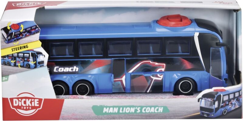 Autobus MAN Lion´s Coach au point mort, en tournant la molette sur le toit, on contrôle les roues avant, les portes ouvrantes et le compartiment à bagages.
