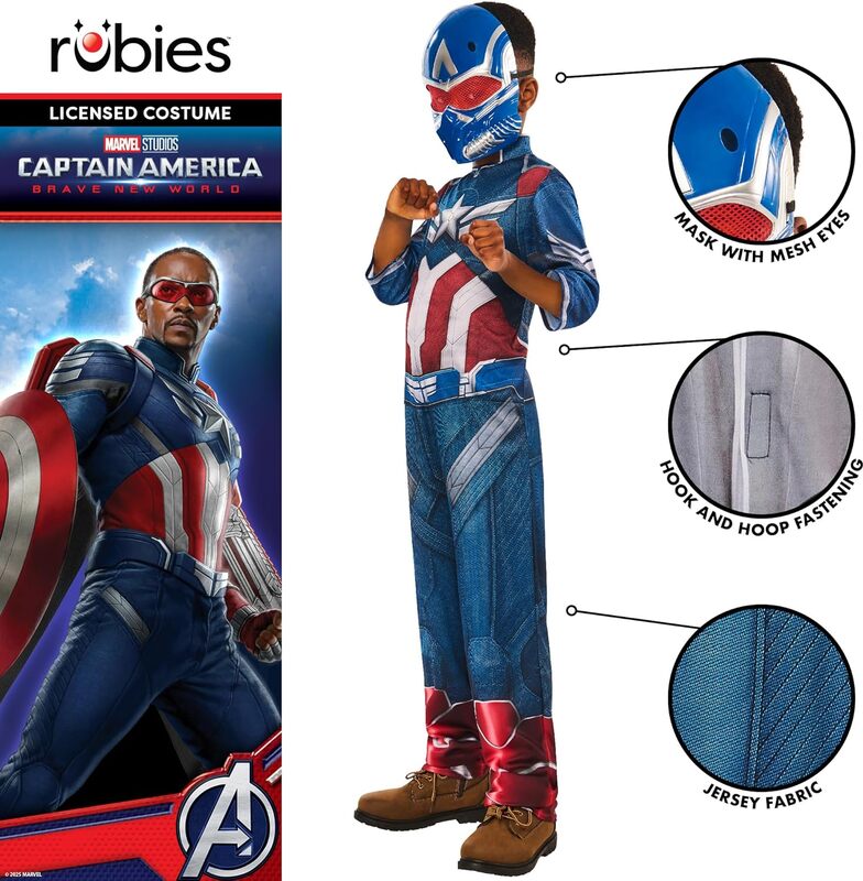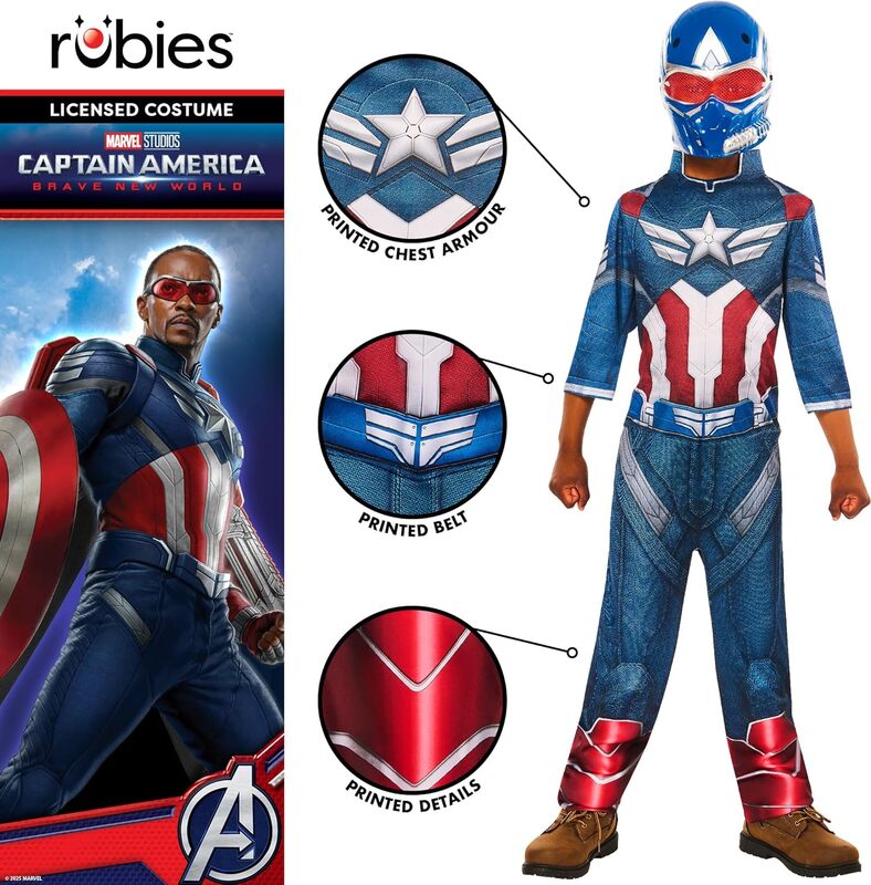 Costume d'enfant Captain America composé d'une combinaison avec des couvre-chaussures et d'un masque. Steve Rogers, connu sous le nom de Captain America, a obtenu ses pouvoirs grâce à un sérum qui a fait de lui un super-soldat. Captain America a toujours été un leader intrépide des Avengers et avec son bouclier, il a prouvé qu'il était inarrêtable. Apportez un peu de magie dans votre monde et devenez ce super-héros.