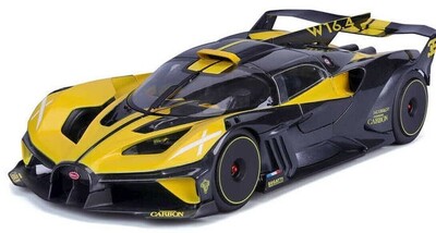 Modèle en métal de voiture 1:18 TOP Bugatti Bolide Jaune/Noir pour les collectionneurs. Il a un capot et des portes ouvrants, la direction des roues avec le volant est entièrement fonctionnelle. La couleur du modèle est conforme à l'image.