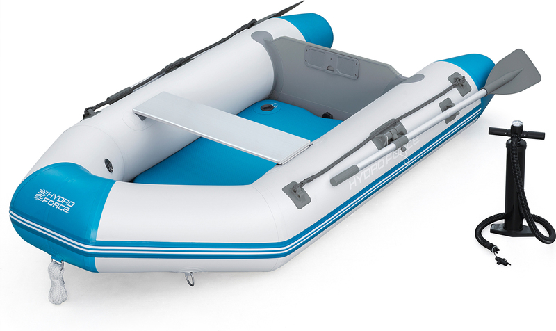 Le kit de bateau de sport Bestway® Hydro Force® Mirovia Pro™ comprend une paire de pagaies de 162 cm de long, une pompe à piston à un temps avec manomètre intégré, une corde de remorquage de 10 mètres, un sac de transport pratique et un kit de réparation.