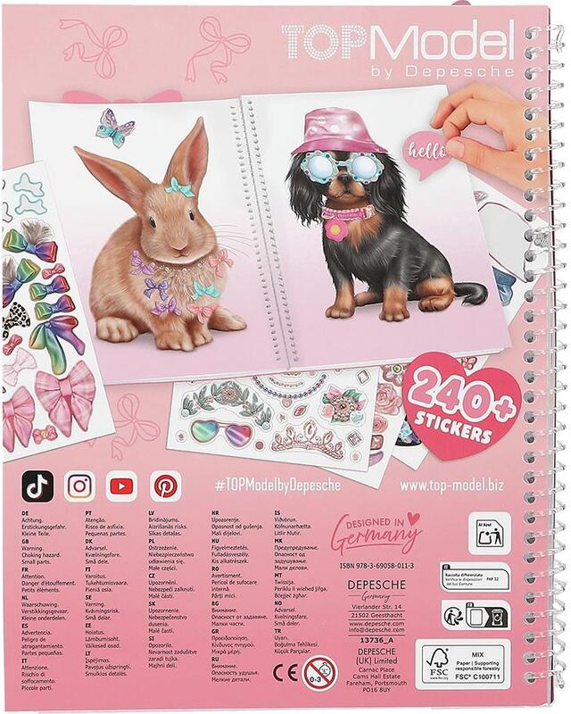 240+ autocollants – le cahier créatif TOPModel contient des animaux pré-dessinés et des autocollants de vêtements et d'accessoires pour créer ses propres tenues.