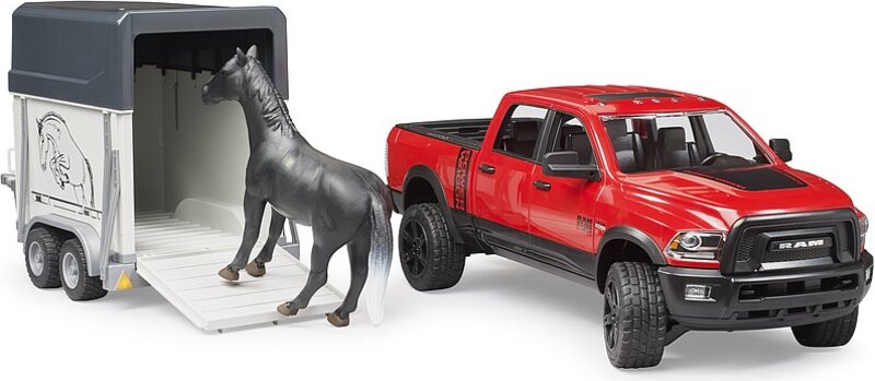BRUDER 2501 Jeep RAM Power Wagon avec remorque pour chevaux, fabricant Bruder. Une copie en plastique fidèle de l'équipement réel à l'échelle 1:16.