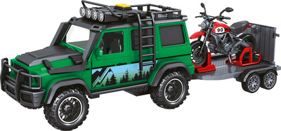 CITY SERVICE CAR - 1:14 Véhicule de garde forestière avec remorque et moto avec son et lumières