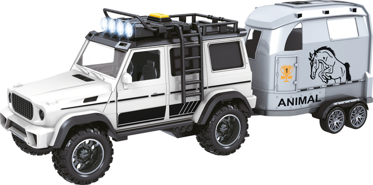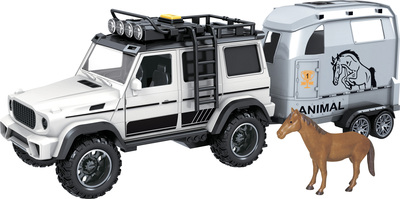 CITY SERVICE CAR - 1:14 - Véhicule tout-terrain avec remorque et cheval (avec son et lumières)