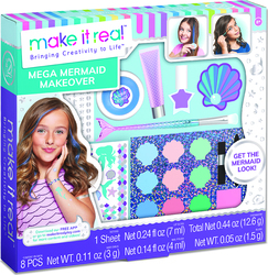 L'emballage contient 9 couleurs de fards à paupières, un blush, 2 mini pinceaux cosmétiques, un gloss à lèvres, une craie pour cheveux, un tatouage, un vernis à ongles, des autocollants pour ongles, une lime à ongles, des instructions.
