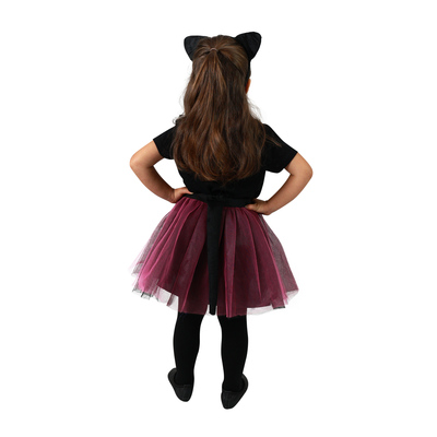 Le costume en noir et rose est destiné aux petites filles âgées de 3 à 10 ans.