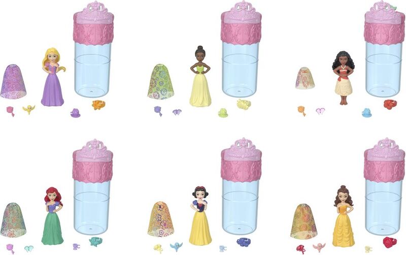 - Dans chaque sachet, il y a une des 6 princesses différentes : Ariel, Cendrillon, Tiana, Belle, Jasmine ou Raiponce