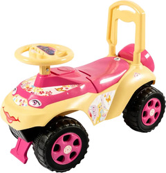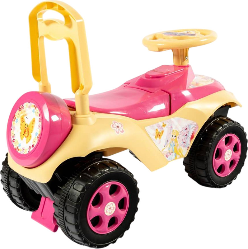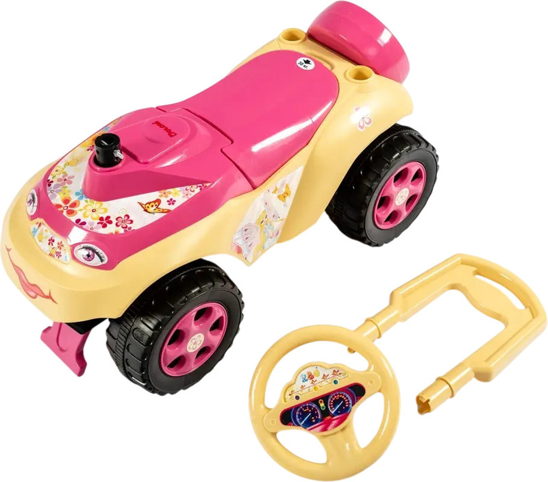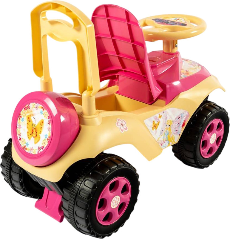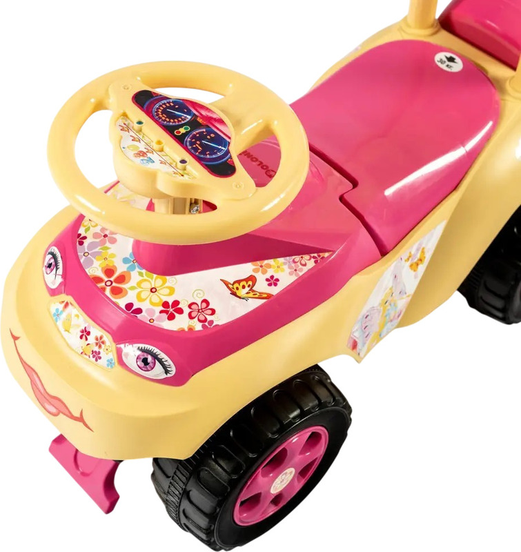 Le porteur deviendra le moyen de transport préféré de votre enfant à la maison comme dans la rue. La construction du porteur est stylisée comme une vraie voiture, la carrosserie est fabriquée en plastique résistant, avec 4 larges roues à bande de roulement, un volant et un siège confortable avec dossier. Les roues avant tournent avec le volant. La voiture est résistante au renversement, avec une protection à l'avant et à l'arrière contre les objets tombants en dessous. Sous le siège se trouve une boîte pour ranger de petits jouets. Le volant tourne dans les 2 sens. Vous pouvez aider votre enfant à conduire avec la poignée du pousseur à l'arrière.