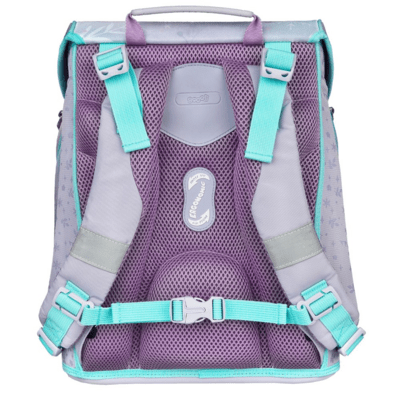 Rembourrage anatomiquement formé et respirant s'adapte à la forme du dos de l'enfant pour éviter une surcharge de la région lombaire. Large bretelles rembourrées en forme de S avec un tissu en maille respirante sont réglables, douces et confortables. Une sangle de poitrine amovible empêche le glissement et répartit le poids uniformément sur les deux épaules. En bas, il y a des boucles pour une ceinture de hanche optionnelle (non incluse). Un fond solide assure la stabilité et un remplissage facile du sac. Le sac a un certificat IGR en tant que produit ergonomique.