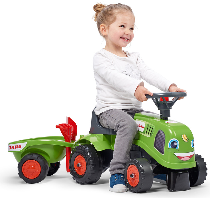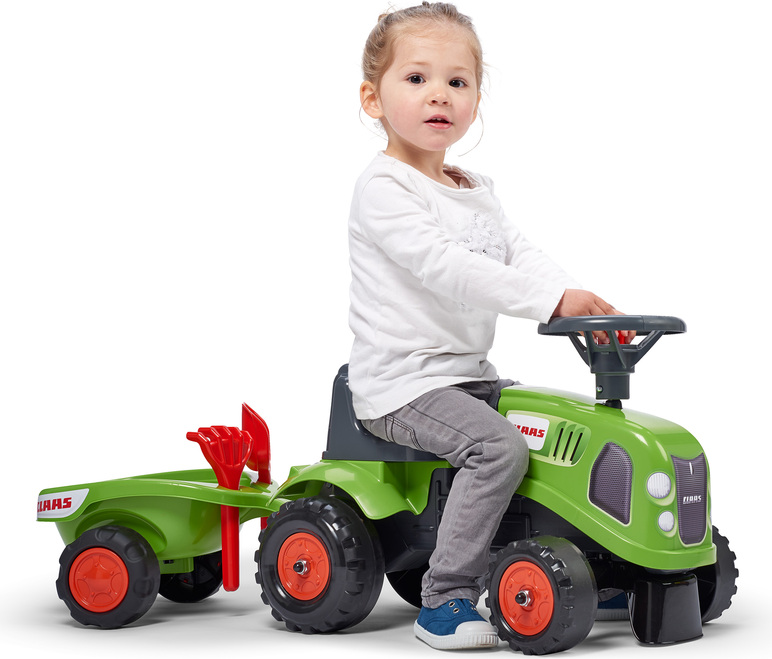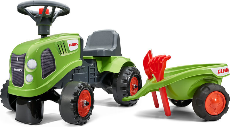 Falk Odrážadlo 212C Baby Claas avec remorque et pelle avec râteau
