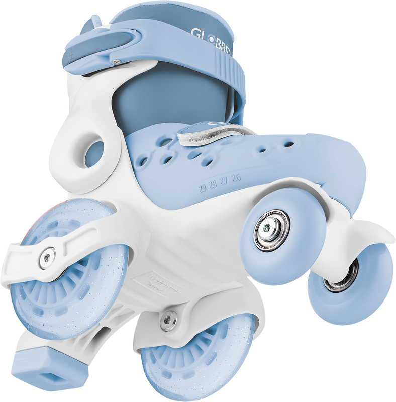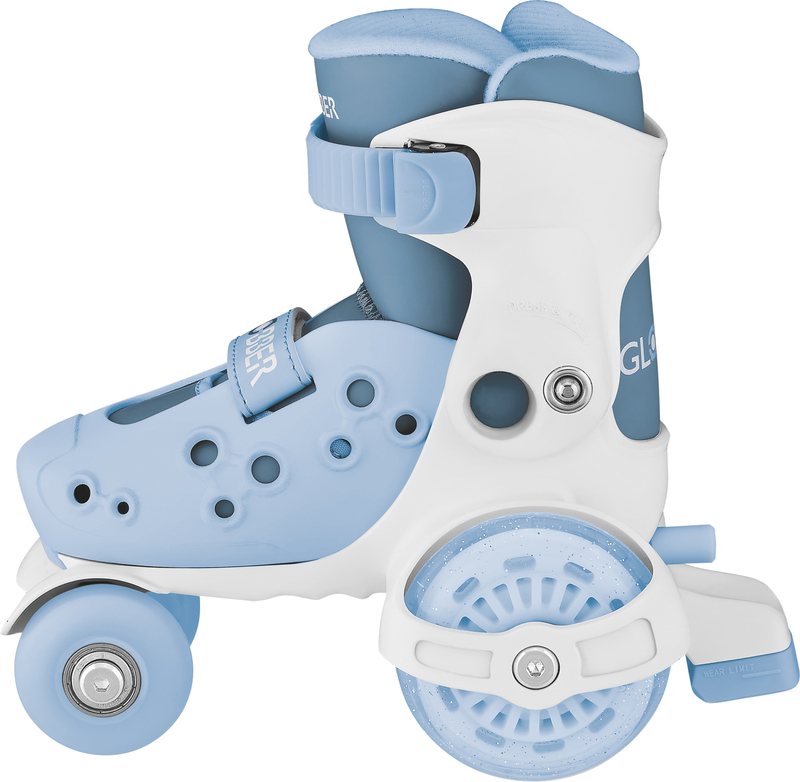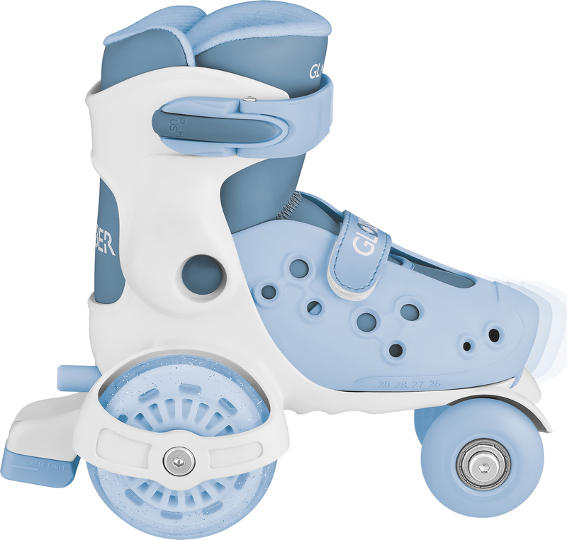 Globber LEARNING SKATES sont des patins à roulettes quad pour enfants spécialement conçus pour les plus petits patineurs (à partir de 3 ans) qui font leurs premiers pas sur des roues. Le design parallèle sécurisé avec quatre roues, des chaussures confortables et un réglage facile font de ces patins le compagnon idéal pour développer l'équilibre, la coordination et la confiance en soi. Les LEARNING SKATES sont fabriqués à partir de 20 % de plastique recyclé certifié selon le Global Recycled Standard (GRS).