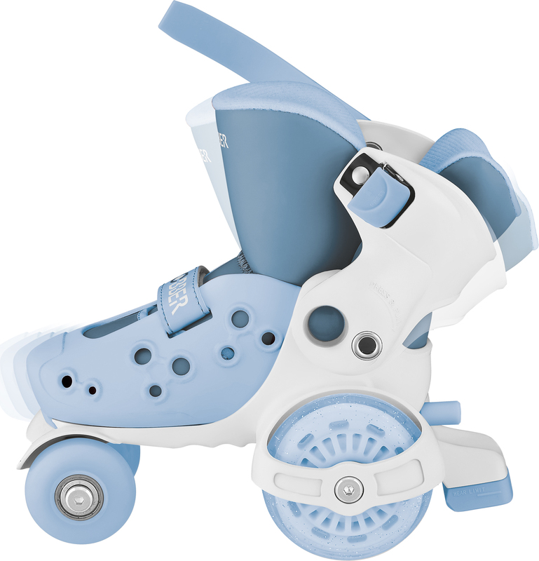 Le réglage de la taille est 100 % sans outils — grâce aux boutons de réglage de la longueur et aux bandes de fixation supplémentaires, les patins s'adaptent rapidement et facilement aux petits pieds en croissance. Les chaussures se mettent facilement, sont rembourrées de velours doux et de matériau EVA pour un confort maximal. Quatre roues PU très résistantes sur roulements ABEC 9 assurent une conduite fluide et stable — les roues avant sont plus petites (pour un mouvement plus lent et un meilleur contrôle), les roues arrière sont plus grandes et scintillantes pour une stabilité et un amusement supplémentaires. Chaque patin est équipé d'un frein solide en matériau TPR, permettant un arrêt sûr et immédiat.