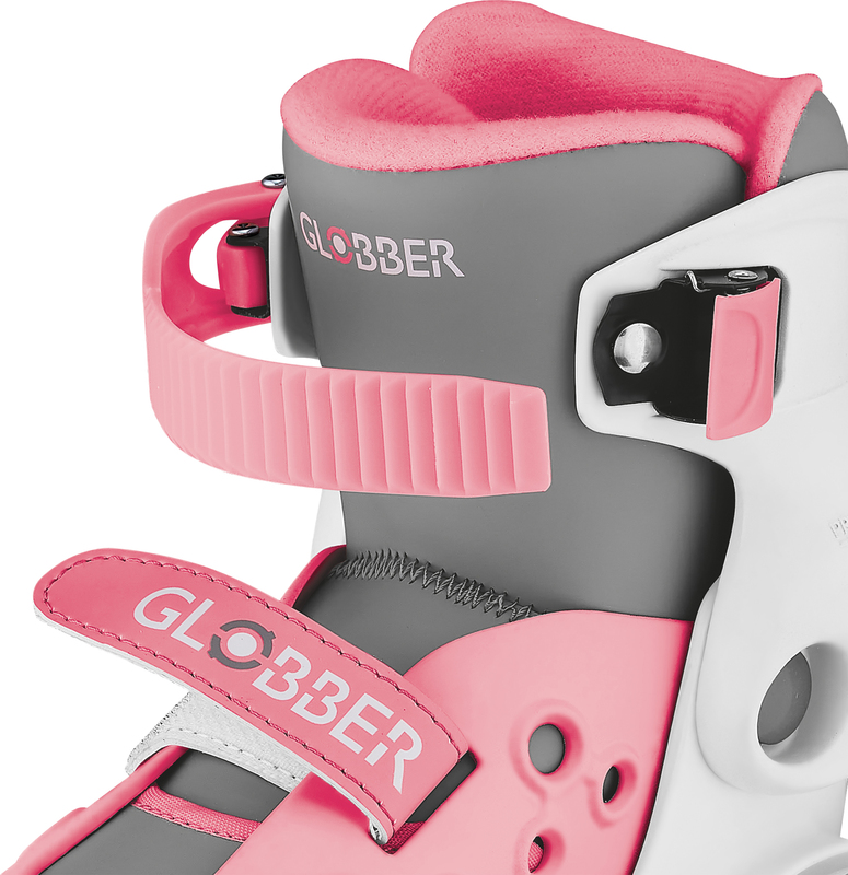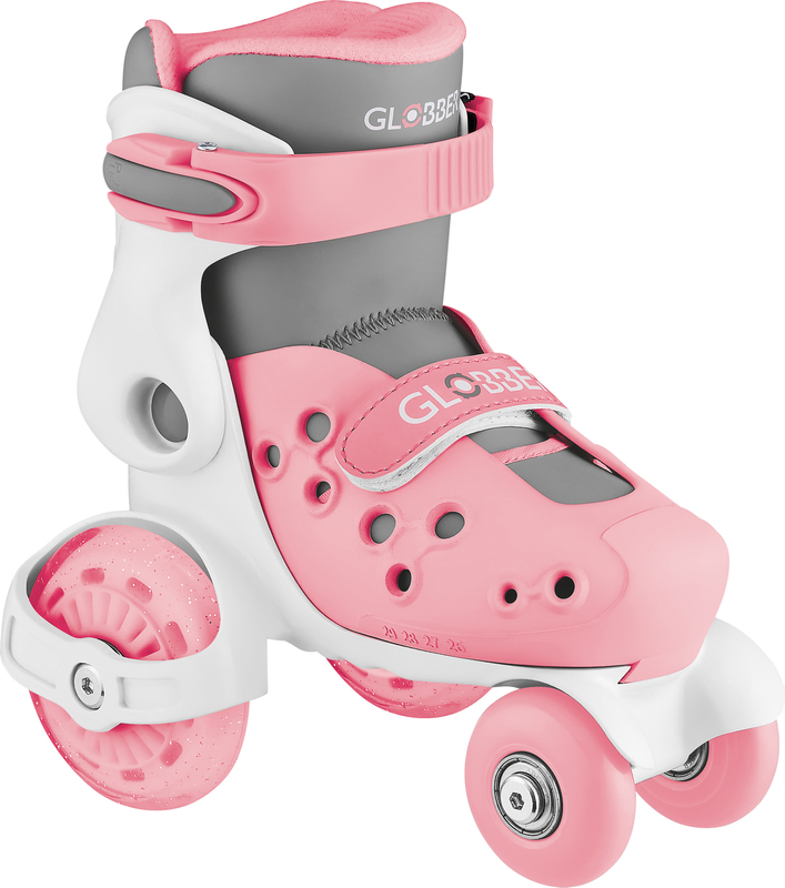 Globber LEARNING SKATES sont des patins à roulettes quad pour enfants spécialement conçus pour les plus jeunes patineurs (à partir de 3 ans) qui font leurs premiers pas sur des roues. Le design parallèle sécurisé avec quatre roues, des chaussures confortables et un réglage facile font de ces patins le compagnon idéal pour développer l'équilibre, la coordination et la confiance en soi. Les LEARNING SKATES sont fabriqués à partir de 20 % de plastique recyclé certifié selon le Global Recycled Standard (GRS).