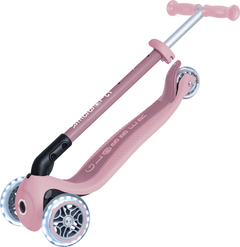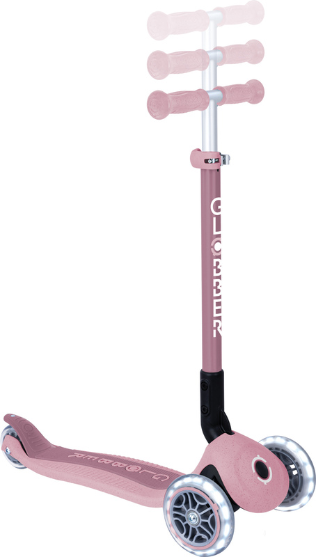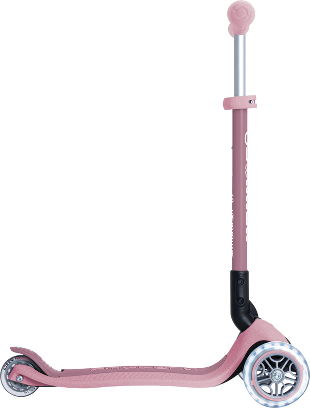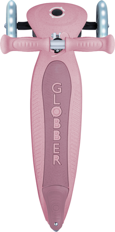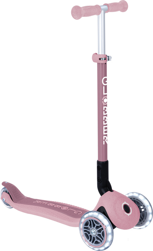Globber Junior Foldable Lights Ecologic est une trottinette pliable à 3 roues pour les plus petits riders, qui allie amusement et respect de l'environnement. Sa construction utilise 60 % de plastique certifié selon le Global Recycled Standard (GRS) et bioplastique à base de paille de blé – un matériau naturel provenant des déchets agricoles. La trottinette est lauréate du prestigieux prix Junior Design Awards 2023.
