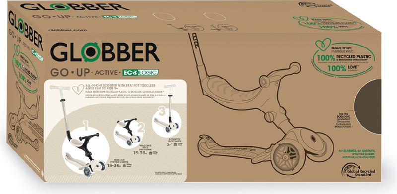 GO•UP ACTIVE LIGHTS ECOLOGIC est une trottinette écologique à 3 roues avec siège, conçue pour les tout-petits et les enfants de 15 mois à 9+ ans. Elle fait partie de la collection ECOLOGIC et est fabriquée en 100 % plastique recyclé certifié selon le Global Recycled Standard (GRS) et en bio-composants de paille de blé.