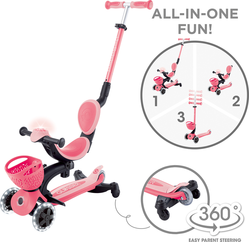 Globber trottinette Go Up Baby lights 360 ° Coral Pink