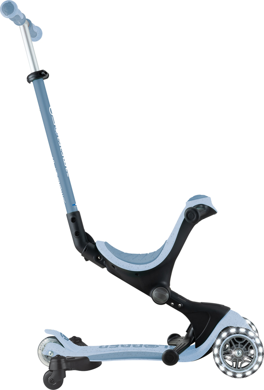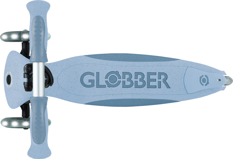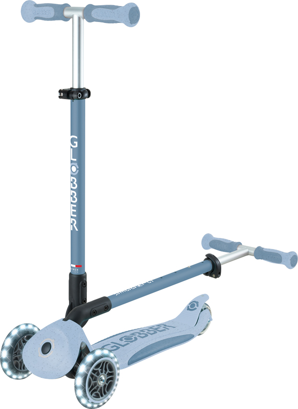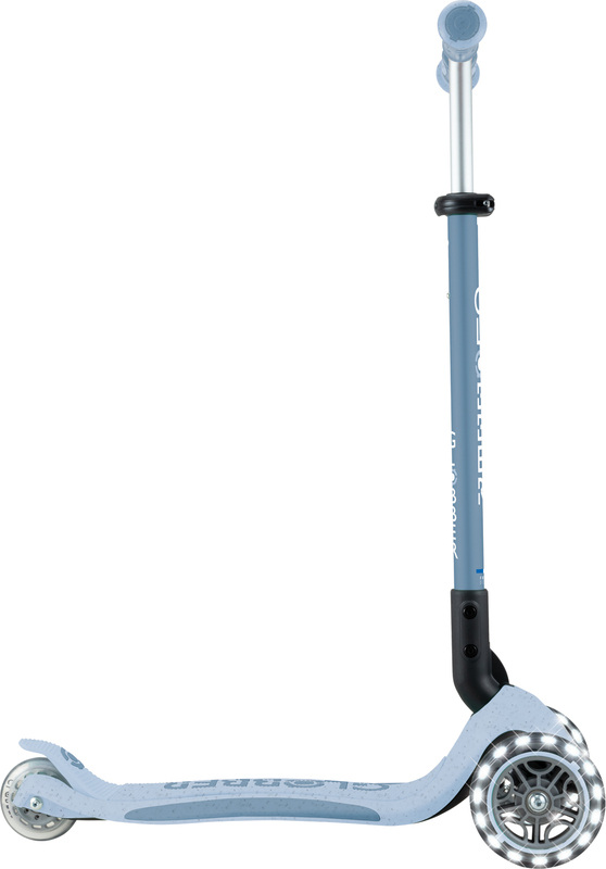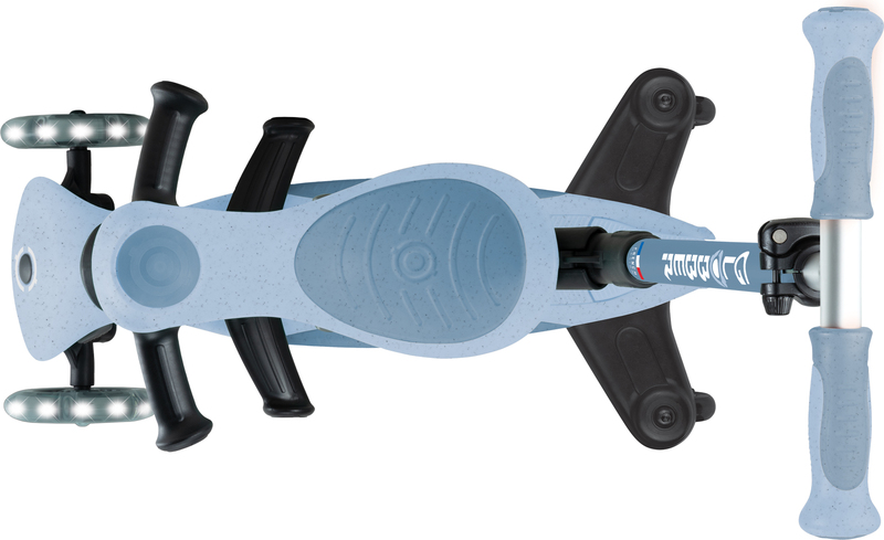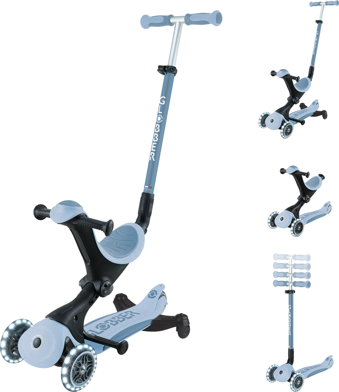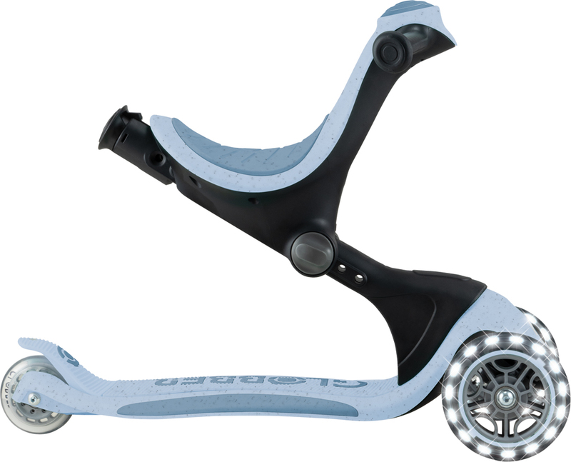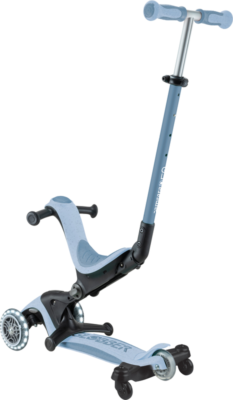 Globber GO•UP DELUXE LIGHTS ÉCOLOGIQUE 360° est une trottinette pliable à 3 roues avec siège premium qui grandit avec l'enfant, de tout-petit à écolier. La construction est fabriquée en 100 % plastique certifié selon le Global Recycled Standard (GRS) et en bioplastique à base de paille de blé, ce qui classe cette trottinette parmi les produits les plus écologiques du portefeuille de Globber. La trottinette est lauréate d'un prestigieux prix de design.