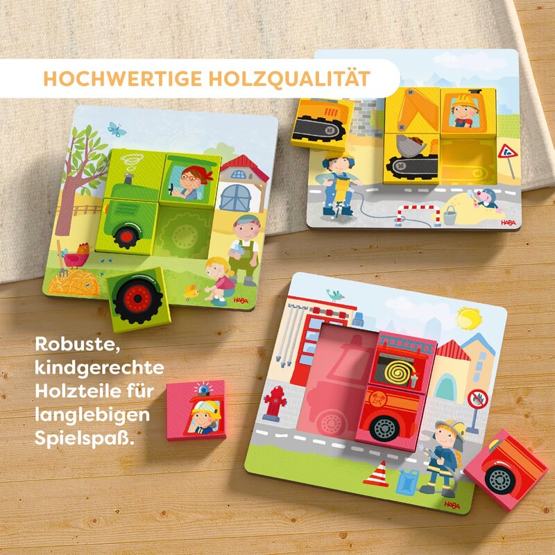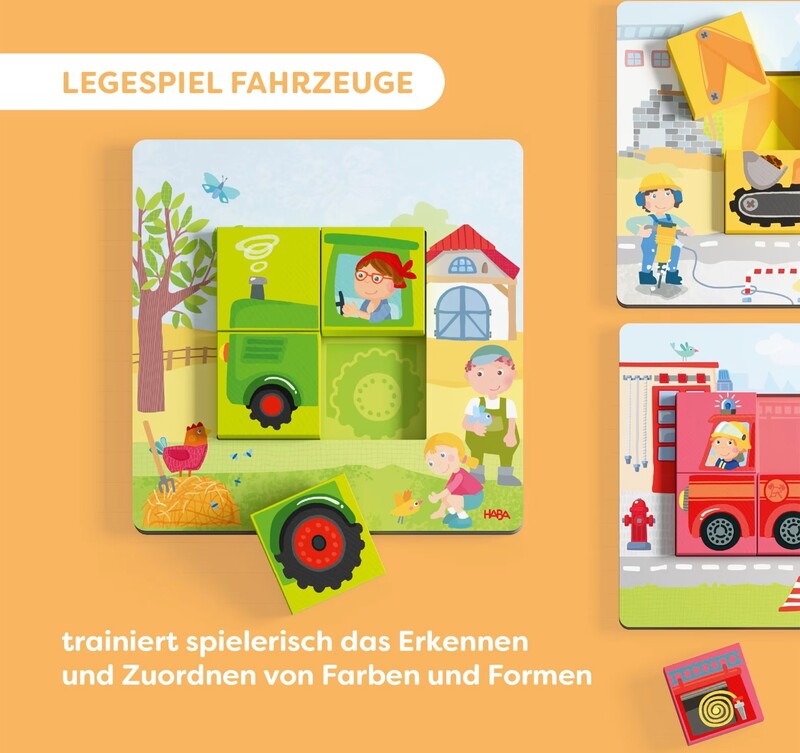 Les enfants peuvent assembler eux-mêmes un camion de pompiers, un tracteur ou une pelleteuse et ensuite les attribuer au bon monde thématique, ce qui apporte la joie d'une construction réussie.