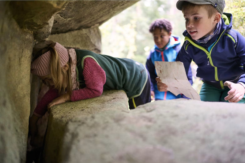 Ensuite, ils partent pour une grande chasse ! Le jeu enseigne de manière ludique les premières lectures de cartes et la navigation – comme une véritable aventure.