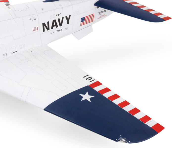 Od svojho uvedenia do služby na konci 70. rokov 20. storočia vycvičil lietadlo BAE Systems Hawk a jeho varianta pre americké námorníctvo T-45 Goshawk, generácie vojenských pilotov po celom svete. Tento model kombinuje autentické línie s ľahkým a odolným drakom z balzy a preglejky vystuženej uhlíkovými vláknami. Súčasťou balenia sú všetky ovládacie prvky, vrátane kompozitnej palivovej nádrže o objeme 5,5 l s hliníkovými magnetickými plniacimi a odvzdušňovacími armatúrami, dvojstenné nerezové koncovky výfuku a montážny materiál. Veľké horné poklopy umožňujú rýchly a jednoduchý prístup k turbíne, palivovému systému a elektronike. Fanúšikovia ocenia tlačený továrensky aplikovaný potah s detailmi panelov, poklopov a nitov. Detailne spracovaný kokpit s čírymi oknami ukrýva figúrky pilotov, tvarované sedadlá a 3D prístrojovú dosku.