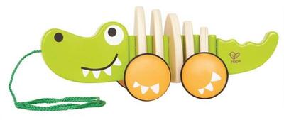 Crocodile à tirer et à pousser. Un beau crocodile en bois de couleur verte ravira chaque enfant. Il suffit d'une légère pression ou de tirer sur la corde et le crocodile se déplace.