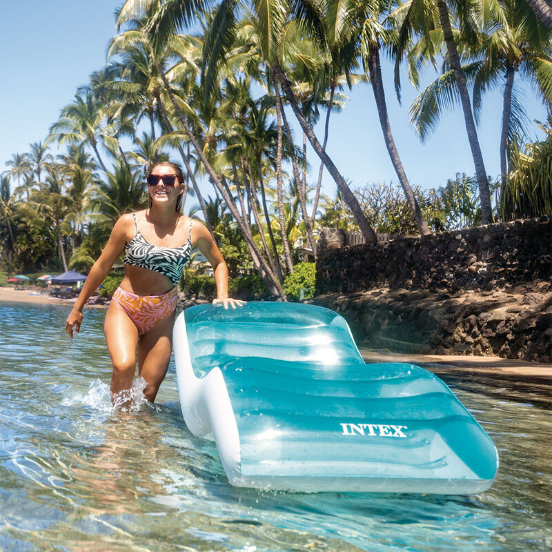 Le fauteuil gonflable confortable et moulé de la marque Intex d'une taille approximative de 1,91 m x 0,99 m est le choix idéal pour se détendre sur l'eau.