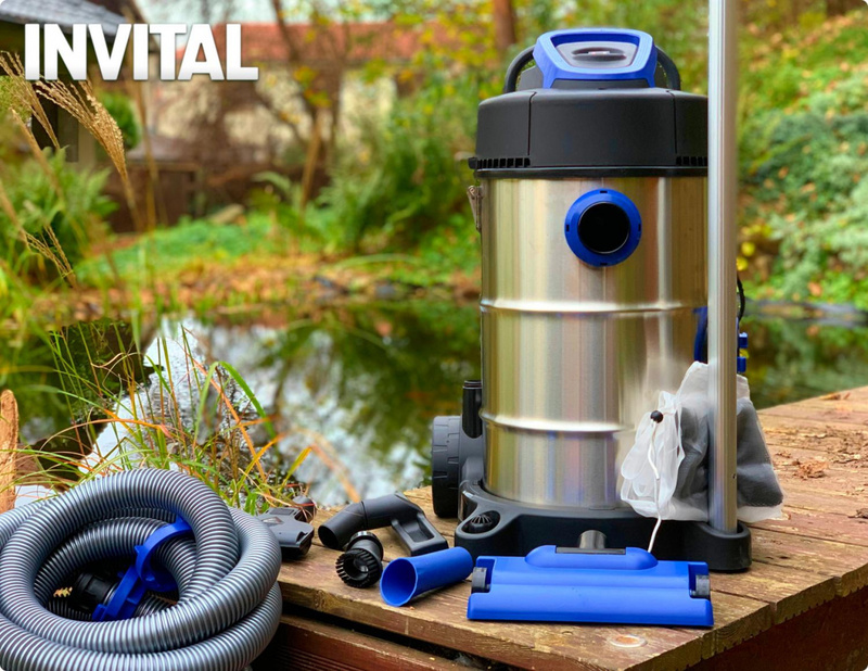INVITAL AquaVac PRO est la solution complète au problème de l'entretien des étangs de jardin ou des piscines. Il s'agit d'un aspirateur haute performance et polyvalent pour l'aspiration humide et sèche. Grâce à un grand nombre d'accessoires et à une construction robuste, il peut accomplir les tâches les plus difficiles, que ce soit l'aspiration de la boue, le nettoyage des composants des algues ou la collecte des feuilles tombées.