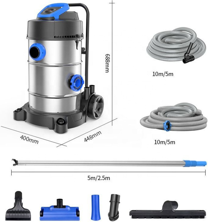 Les pompes sont adaptées à l'aspiration humide et sèche, ce qui permet de nettoyer non seulement à l'intérieur de l'étang ou de la piscine, mais aussi autour de celui-ci.