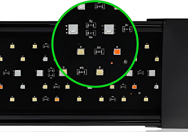 Le luminaire Sinkor a un grand nombre de LED, à savoir 432 pièces pour 120 cm, et un bon refroidissement sous forme de corps en aluminium, ce qui lui permet d'atteindre une efficacité supérieure, et donc le prix par lumen est nettement meilleur que celui des luminaires concurrents. Et si vous avez des plantes exigeantes en lumière et que la puissance n'est toujours pas suffisante, il est financièrement plus avantageux de placer deux luminaires Sinkor au-dessus de l'aquarium plutôt qu'un autre luminaire plus puissant.