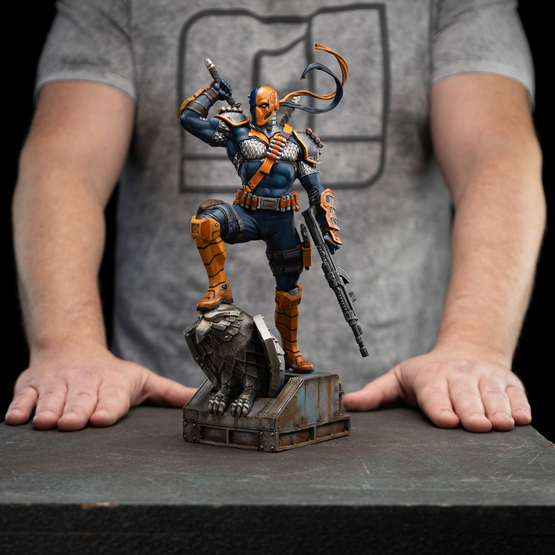 La statue a été dévoilée lors de l'Inside Iron Studios Day en janvier 2025, en lien avec les sorties de personnages de la série DC Comics #9. C'est la deuxième représentation de Deathstroke des comics par Iron Studios ; la dernière a été publiée lors de la série #2, il y a de nombreuses années.