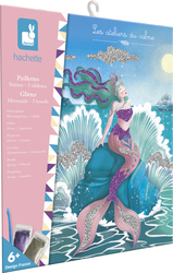 Au fond de la mer... Ce kit de création peut être utilisé pour décorer 3 images de sirènes avec des paillettes !Il contient 3 images avec des zones marquées pour la décoration (21 x 25 cm), 2 sachets de paillettes zippés (argentées et violettes), 1 outil en plastique avec 2 embouts différents (1 embout pointu pour décoller le papier protégeant les zones à décorer et 1 embout cuillère pour remettre les paillettes dans les sachets) et 1 brochure avec des instructions et des suggestions.