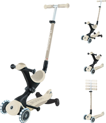 Le GO•UP BABY LIGHTS 360° est un trottinette à trois roues avec un siège pour les tout-petits, qui peut être transformé en trottinette à pousser, en mode marche et en trottinette pour les tout-petits.