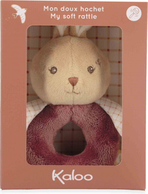 La belle fourrure en peluche bourgogne est incroyablement douce au toucher et procure une sensation agréable pour les petites mains. Les bretelles en popeline à motif à carreaux donnent au lapin un aspect mignon et intemporel, caractéristique de l'univers Kaloo. Le jouet favorise le développement sensoriel et la coordination main-œil.