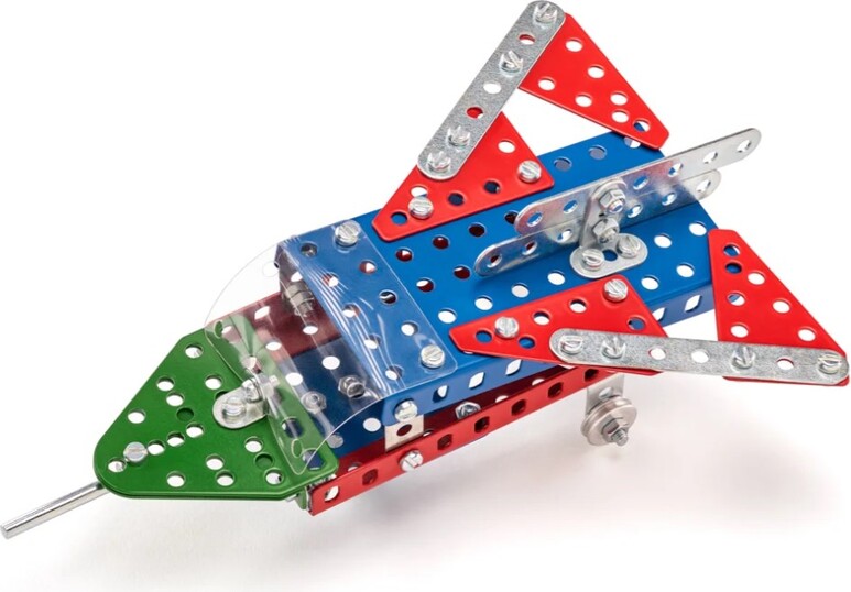 Kit Merkur Classic C01. Il s'agit d'une maquette exclusive qui est une réplique de maquettes similaires du début du siècle dernier. Toutes les pièces sont en matériaux traditionnels et dans des couleurs naturelles, comme le zinc, la patine ou le vernis incolore. Dans la maquette, vous ne trouverez aucun plastique et toutes les pièces sont rangées dans des inserts en papier ou dans des boîtes en métal ou en papier. Un livret de 20 pages avec des instructions, fabriqué dans le style des années 30, fait également partie de la maquette. Il est possible de construire un autobus à étages, une presse excentrique, une perceuse, une scie à ruban, une voiture de course et de nombreux autres modèles. Un beau cadeau non seulement pour les enfants.Nombre de pièces 929Dimensions 360x270x55 mmPoids 2.7 kg