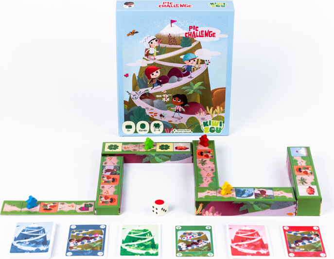 Pic Challenge est un jeu de course familial qui emmène les enfants dans une aventure vers le sommet de la montagne. Chaque joueur utilise des cartes au lieu de lancer un dé traditionnel. Le chemin est plein de surprises - certaines cases aident, d'autres peuvent vous faire reculer un peu. L'objectif est d'atteindre le sommet en premier. Le chemin est plein de tension jusqu'à la toute fin. Le jeu est destiné à 2 à 4 joueurs à partir de 5 ans et une partie dure environ 15 minutes.