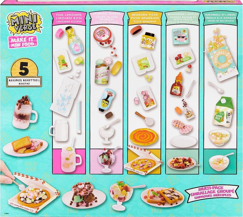 Chaque multipaquet est livré avec des mini « ingrédients » et des accessoires de cuisine réalistes, afin que vous puissiez créer vos propres mini répliques de vos collations et desserts préférés !5 RECETTES EXCLUSIVES incluses dans ce multipaquet ne se trouvent que dans cet emballage et ne sont pas disponibles dans Make It Mini Cafe ou Diner Ball Capsules.