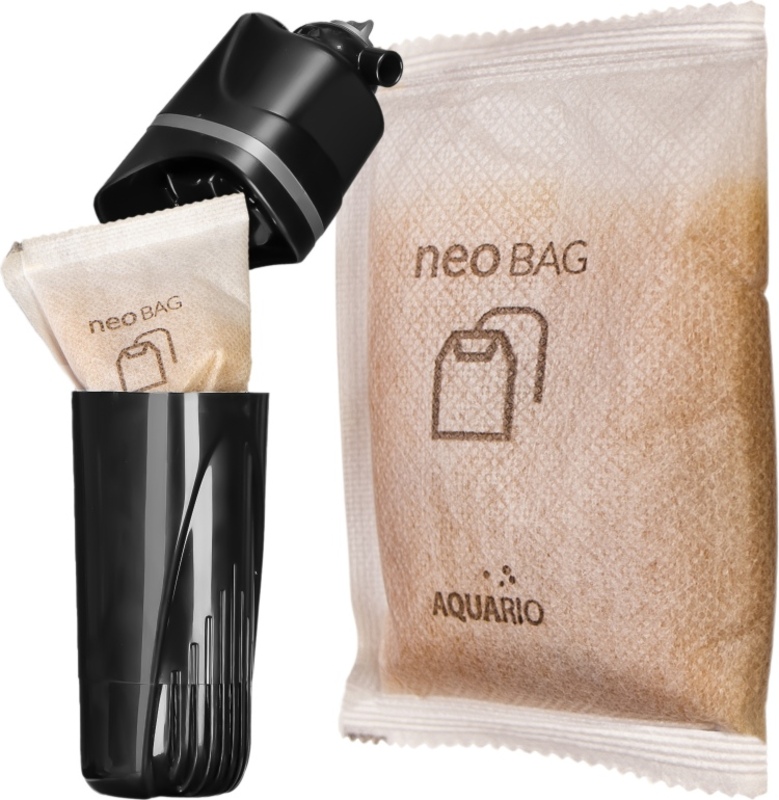Vrecko Neo Bag obsahuje dva rôzne typy aditívnych guľôčok (čierne a biele, pozri obrázok), ktoré poskytujú akváriu stabilný prísun organického uhlíka a stopových prvkov. Samotné uhlíkové guľôčky vo vrecku Neo Bag dokážu odstrániť zlúčeniny dusíka a iné škodlivé látky bez akýchkoľvek ďalších prísad.