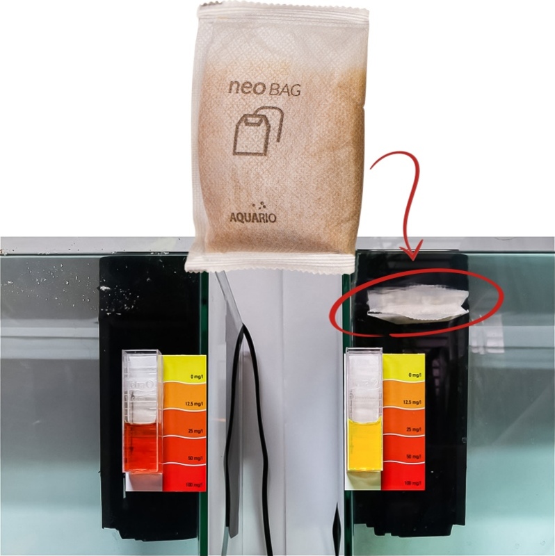 Vrecko Neo Bag obsahuje dva rôzne typy aditívnych guľôčok (čierne a biele, pozri obrázok), ktoré poskytujú akváriu stabilný prísun organického uhlíka a stopových prvkov. Samotné uhlíkové guľôčky vo vrecku Neo Bag dokážu odstrániť zlúčeniny dusíka a iné škodlivé látky bez akýchkoľvek ďalších prísad.