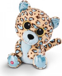 Leopard Lassi en peluche de GLUBSCHIS avec son pelage à pois beige et bleu attire vraiment l'attention.
