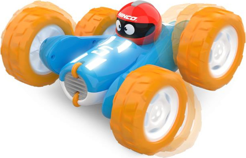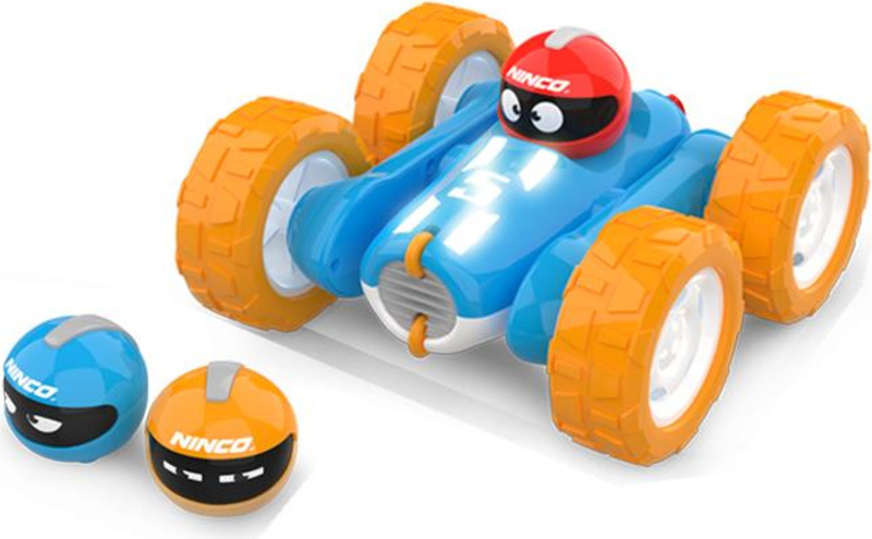 Voiture télécommandée NINCORACERS Acrobatic RTR, qui sait faire des tricks, a un capot superbement éclairé et émet des sons. Grâce à la suspension à bras, à la transmission 4WD et à la direction par entraînement des roues gauche ou droite (comme les tanks), vous pouvez réaliser des acrobaties. L'emballage contient 3 casques interchangeables de différentes couleurs. Il comprend une fonction DEMO, où la voiture effectue une série de mouvements prédéfinis. Contrôleur 2,4GHz. Batterie Li-ion 3,7V 500mAh et chargeur USB.