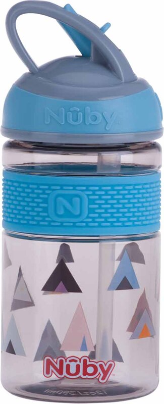 NUBY Bouteille de sport 2 en 1 avec paille rigide rabattable, 360 ml, bleu, 3+