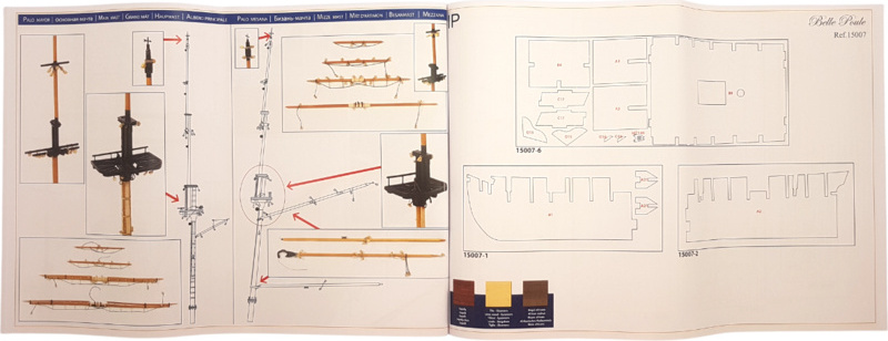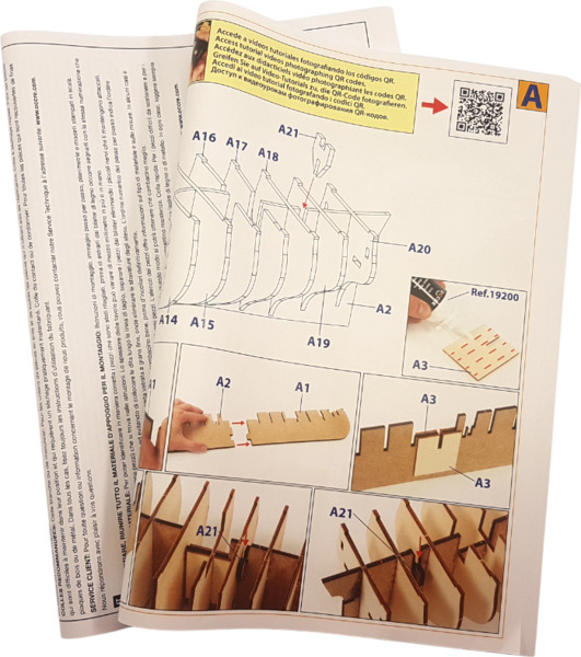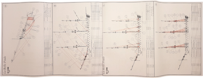 Le kit contient un ensemble complet de documentation de plans du modèle à l'échelle avec des images des différents détails. Le plan montre les assemblages de montage, leur complétion, y compris les mâts et les vergues, ainsi que la manière de gréement. La procédure de construction multilingue régule de manière générale l'assemblage logique des différents composants.