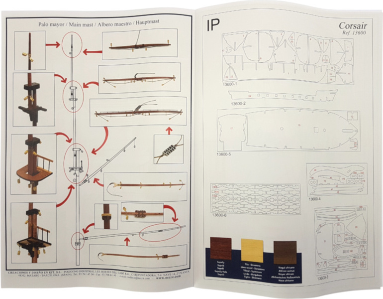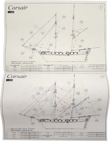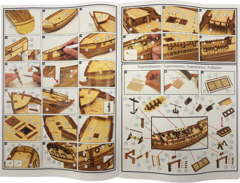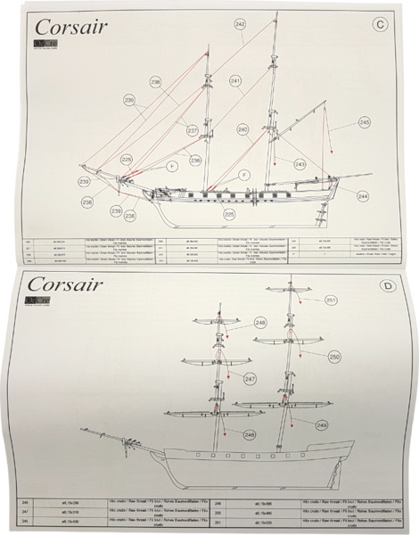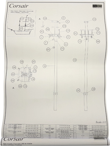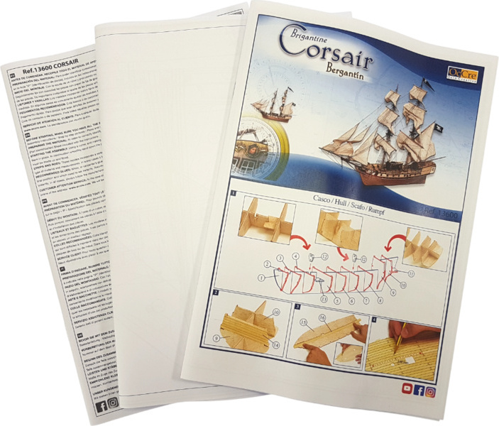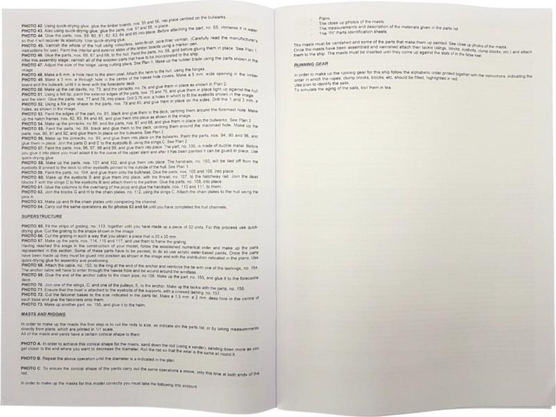 Le kit contient un ensemble complet de documentation de plans du modèle à l'échelle avec des images des différents détails. Le plan montre les assemblages de montage, leur complétion, y compris les mâts et les vergues, ainsi que la méthode de gréement. Le processus de construction multilingue régule de manière générale l'assemblage logique des différents composants.