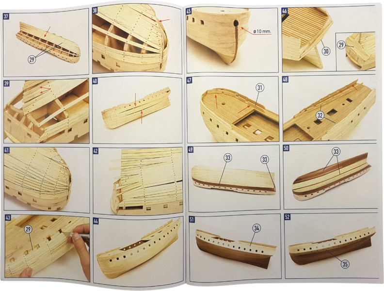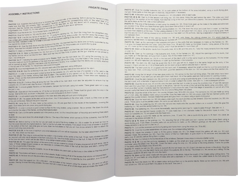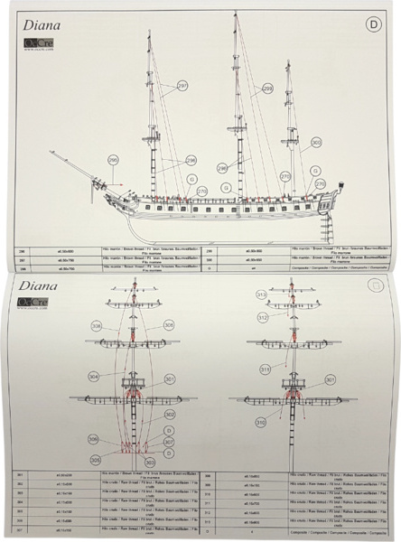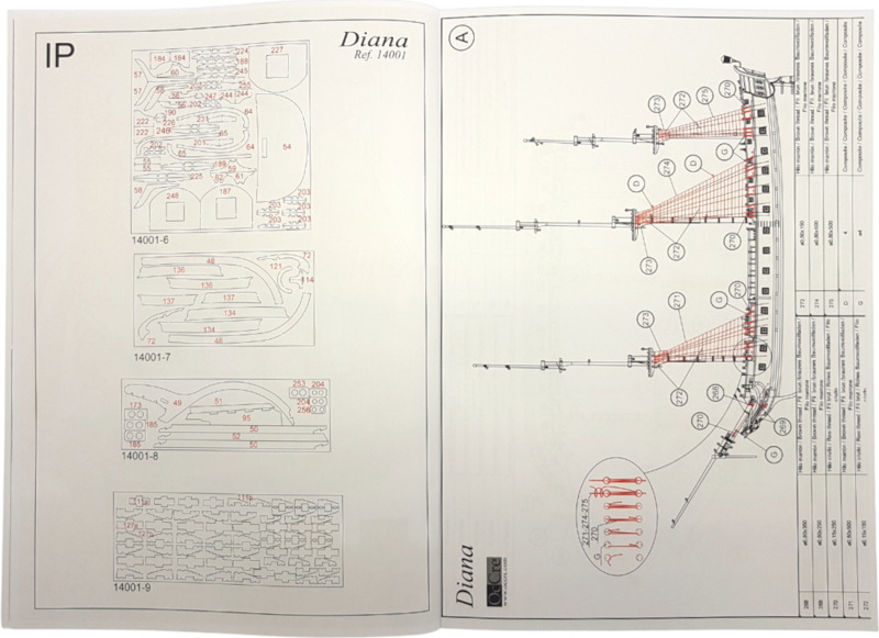 Le set contient un ensemble complet de documentation de dessin du modèle à l'échelle avec des images des différents détails. Le dessin montre les assemblages de montage, leur complétion, y compris les mâts et les vergues et la manière de gréement. La procédure de construction multilingue régule de manière générale l'assemblage logique des différents composants.