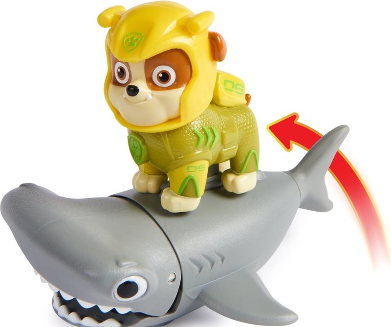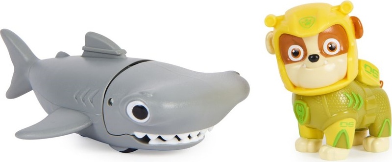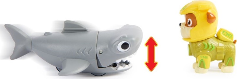 Rubble dans un tout nouveau néoprène et son fidèle ami le marteau. Installe Rubble sur la nageoire du dos du marteau, déplace le marteau vers l'avant pour activer ses mouvements de mastication et pars en mission de sauvetage.