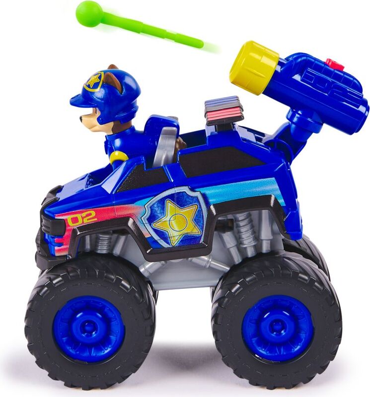 Partez pour des missions de sauvetage passionnantes avec Chase et son véhicule de patrouille de sauvetage ! La voiture de police de Chase au design de monster truck a de grandes roues et un design authentique inspiré de la Pat' Patrouille, elle ressemble donc exactement à celle de la série !Asseyez Chase sur le siège du conducteur et partez en mission de sauvetage. Dès que le moment est venu, chargez le lanceur avec l'un des deux projectiles, appuyez sur le bouton pour tirer et sauvez la situation ! Les jouets sur le thème de la Pat' Patrouille pour les garçons et les filles encouragent le jeu imaginatif et améliorent la motricité fine, ce qui en fait d'excellents cadeaux pour tous les fans de l'émission.