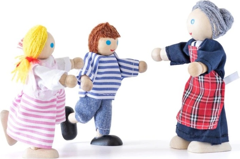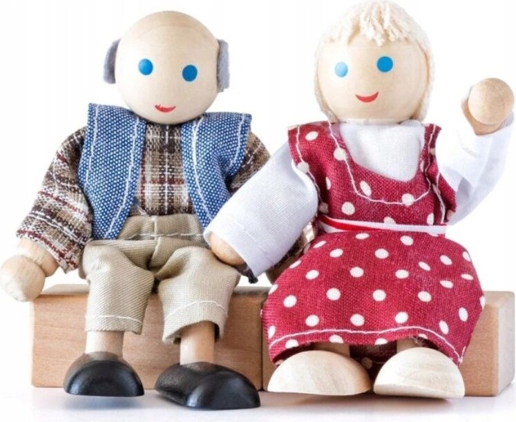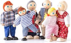 Poupées pour maison de poupée (90600, 90601) Maman, papa, 2 filles, grand-père, grand-mère. Dimensions de la boîte environ 19 x 19 x 5 cm.